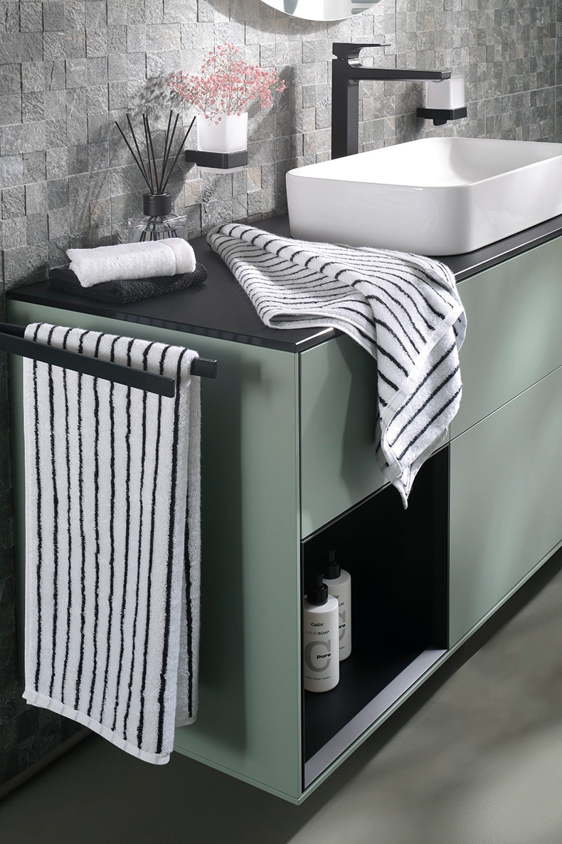 Frottiertuch der Serie Black & White aus 100 % Baumwolle in gewohnt hochwertiger Cawö-Qualität.